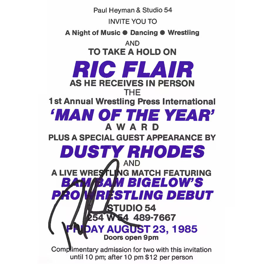 Own a piece of sports entertainment history with this Paul Heyman WWE autographed Original Studio 54 Man Of The Year Award Invitation from August 23, 1985. Straight from Paul Heyman's vault, this limited-edition collectible commemorates his first-ever wrestling promotion, which also saw the pro debut of Bam Bam Bigelow. The invitation is individually numbered and authenticated with FanSecure technology, making it a must-have for any die-hard WWE enthusiast looking to possess something truly special.